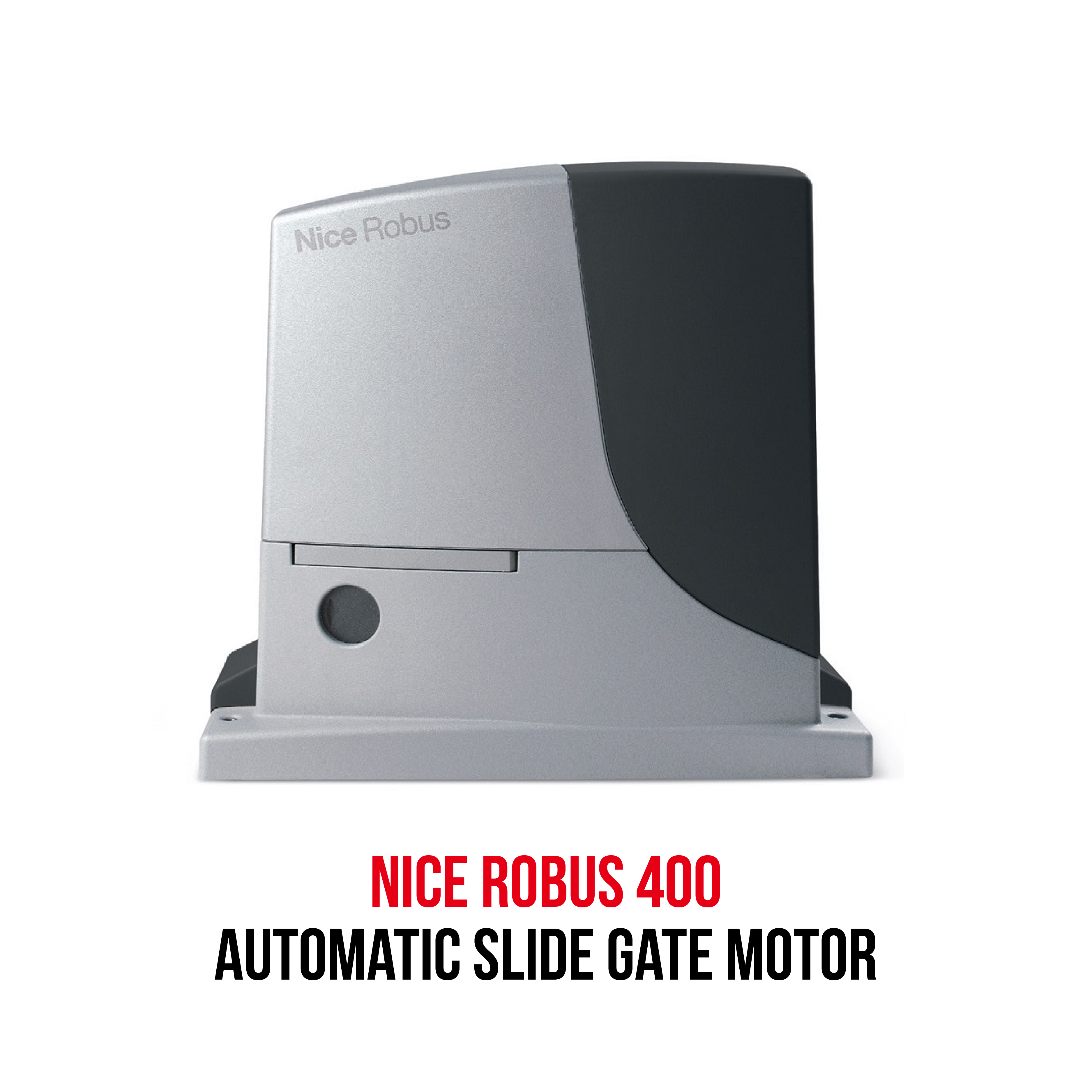The ROBUS400 is a 24V DC sliding gate operator with built-in control unit and OXI plug-in receiver. For sliding gates weighing up to 400 kg (RB400).